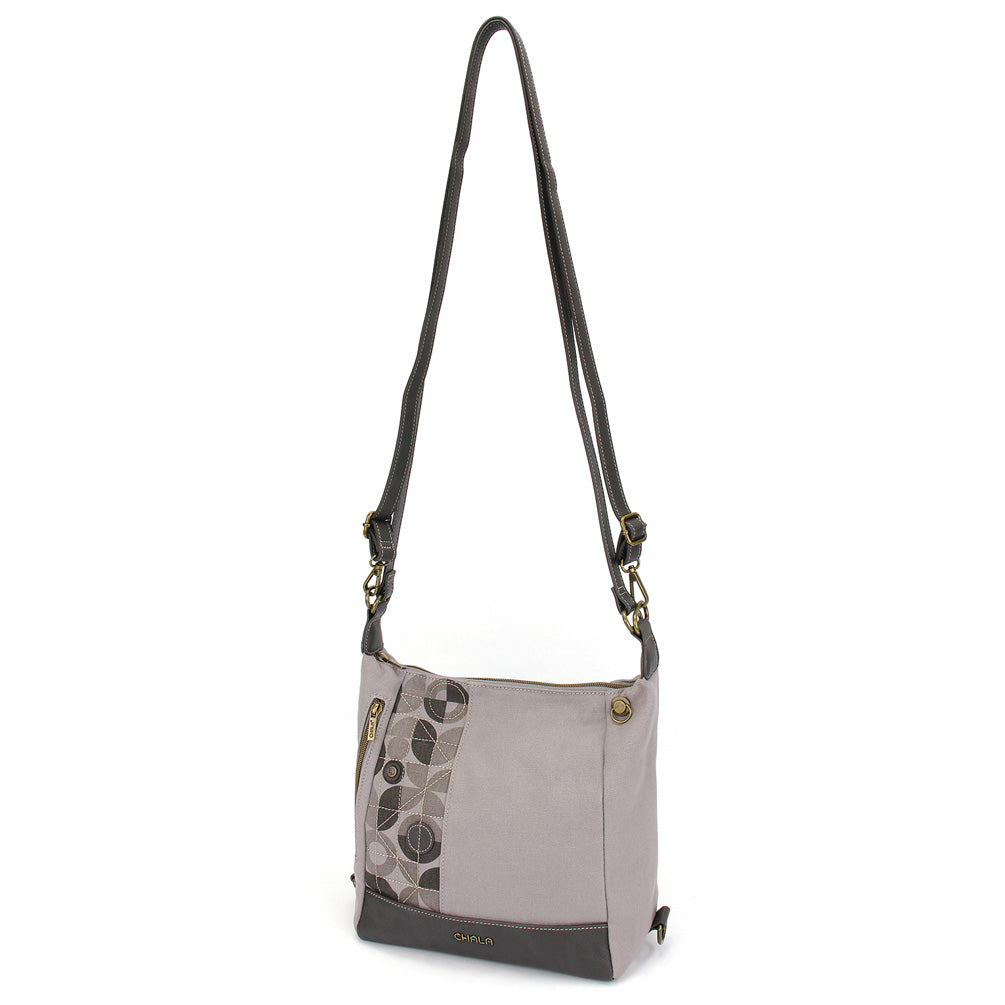 Convertible, Casual and ConvenientUnique Retro print patternsCan be worn as a: Crossbody, Backpack, and Shoulder PurseTop zipper compartment with additional storageSide zipper pocketRear zipper pocketInterior padding for additional protectionSignature brown and teal polka dot lining Features antique, brass toned hardwareMultiple colors availableMaterials: Faux Leather / CanvasApprox. Measurements: 12"W x 10.5"H x 5"DStrap adjustable: 13"-23"