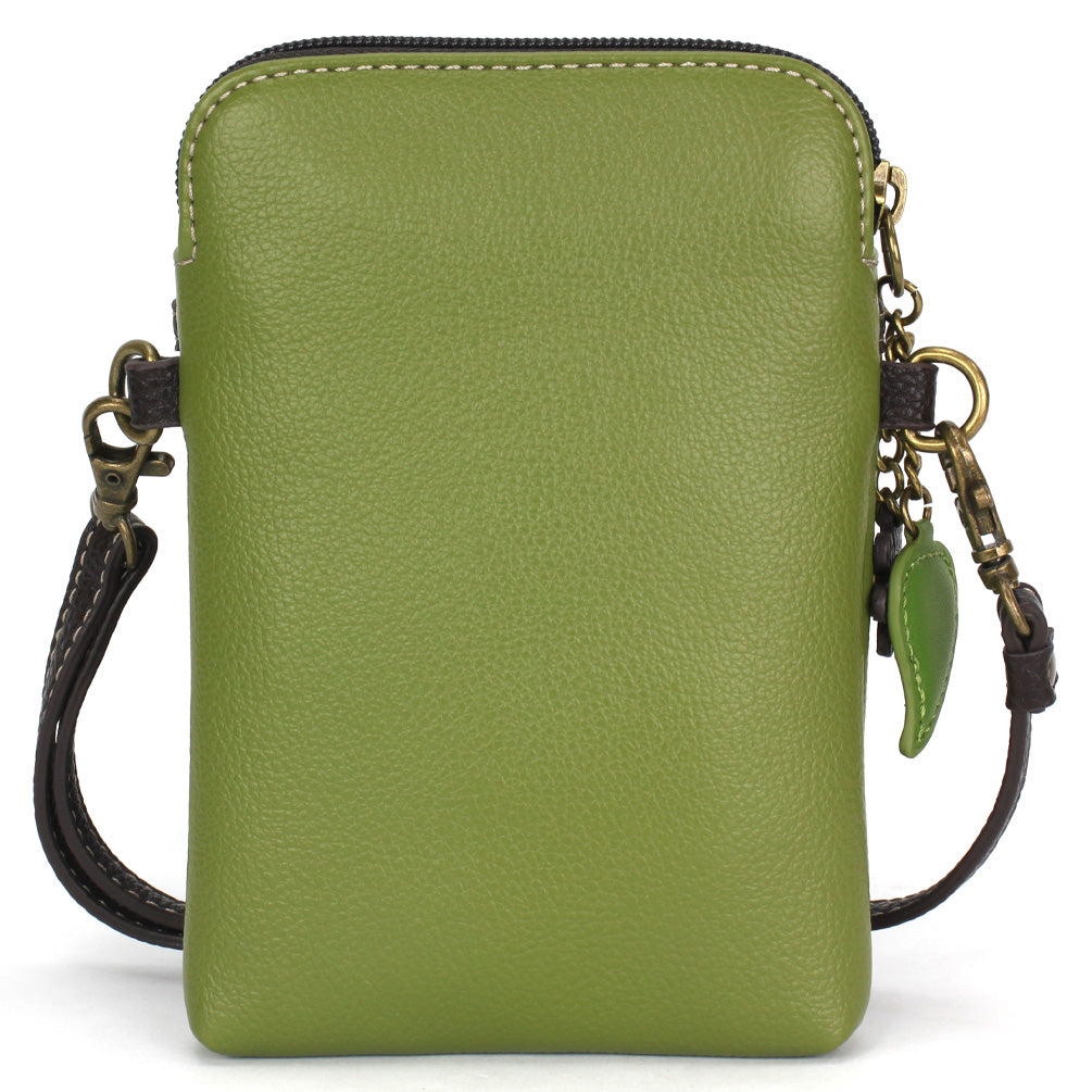 Convenient, Compact, FunSmall front pocket adorned with Pineapple Chala PalAdjustable strap - turn bag into a purse, a crossbody bag, or even a pouch!Top zipper closureDecorative zipper pullExtra padding throughout bag to protect your cell phone3 credit card slots inside2 Adjustable straps that are detachableMaterials: Faux LeatherColor: Green Approx. Measurements: 5"W x 7"H x 1"DStrap adjustable: 7.5"-32"