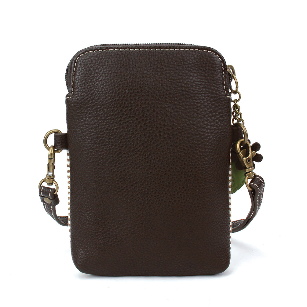 Convenient, Compact, FunSmall front pocket adorned with Koala Chala PalAdjustable strap - turn bag into a purse, a crossbody bag, or even a pouch!Top zipper closureDecorative zipper pullExtra padding throughout bag to protect your cell phone3 credit card slots inside2 Adjustable straps that are detachableMaterials: Faux LeatherColor: Brown StripeApprox. Measurements: 5"W x 7"H x 1"DStrap adjustable: 7.5"-32"