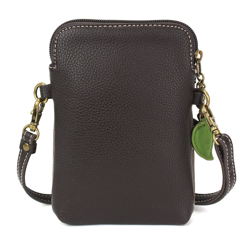 Convenient, Compact, FunSmall front pocket adorned with Moose Chala PalAdjustable strap - turn bag into a purse, a crossbody bag, or even a pouch!Top zipper closureDecorative zipper pullExtra padding throughout bag to protect your cell phone3 credit card slots inside2 Adjustable straps that are detachableMaterials: Faux LeatherColor: Stone GrayApprox. Measurements: 5"W x 7"H x 1"DStrap adjustable: 7.5"-32"