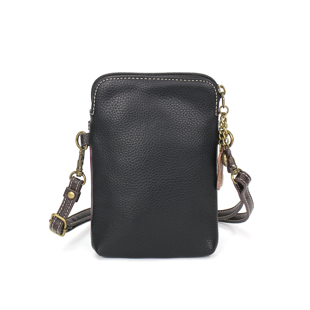 Convenient, Compact, FunSmall front pocket adorned with Boston Terrier Chala PalAdjustable strap - turn bag into a purse, a crossbody bag, or even a pouch!Top zipper closureDecorative zipper pullExtra padding throughout bag to protect your cell phone3 credit card slots inside2 Adjustable straps that are detachableMaterials: Faux LeatherColor: PurpleApprox. Measurements: 5"W x 7"H x 1"DStrap adjustable: 7.5"-32"