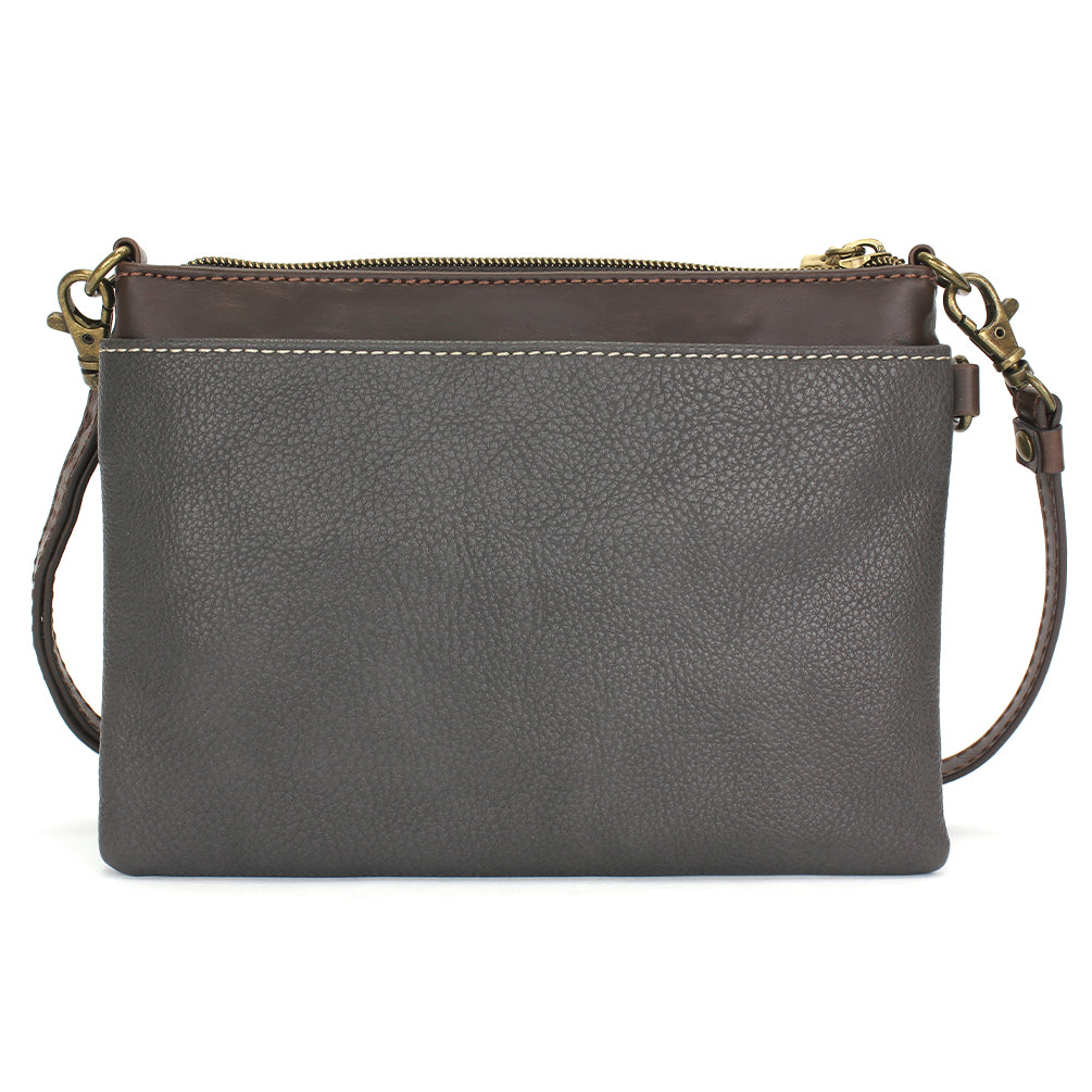 Elegant, Versatile, CompactFront zipper pocket adorned with Flip Flop Chala Pal designIntricate Laser Cut patternDetailed stitching and decorative zipper pullRear slide pocket3 credit card slots inside2 Adjustable straps that are detachableTop zippered pocketPatterned fabric lining with inner slide and zipper pocketsMaterials: Faux LeatherColor: InkApprox. Measurements: 8"W x 6"H x 0.5"DStrap adjustable: 7"-32"Designed in California, USAMade in ChinaColors may not be exactly as shownLining patterns may vary