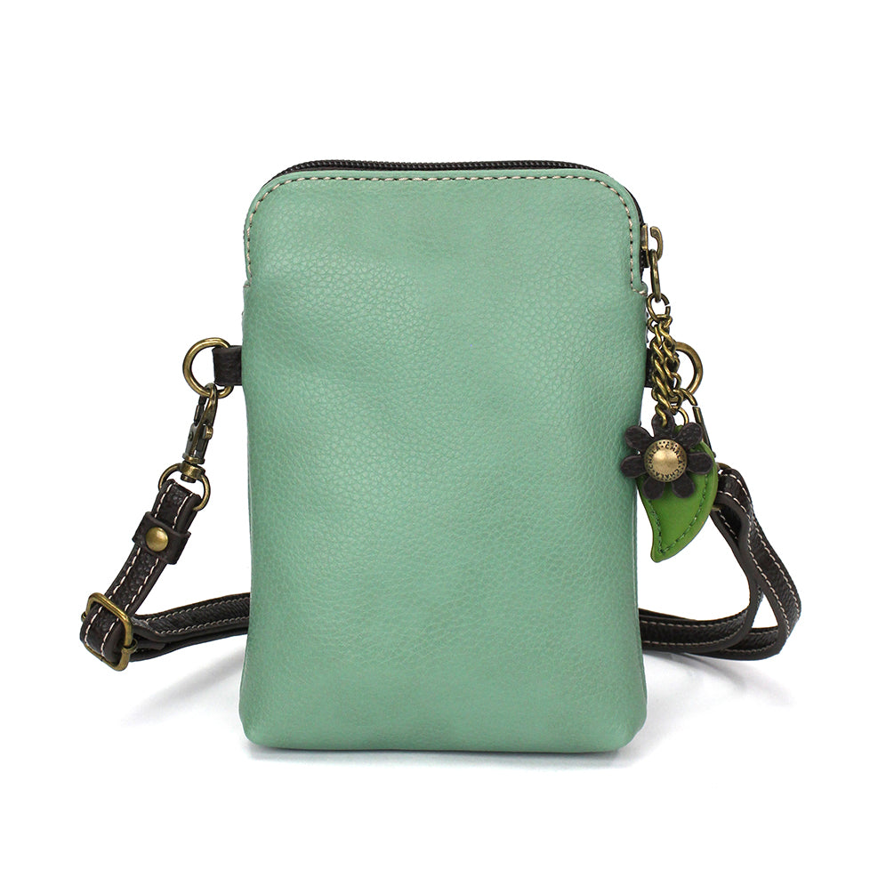 Convenient, Compact, FunSmall front pocket adorned with Sloth Chala PalAdjustable strap - turn bag into a purse, a crossbody bag, or even a pouch!Top zipper closureDecorative zipper pullExtra padding throughout bag to protect your cell phone3 credit card slots inside2 Adjustable straps that are detachableMaterials: Faux LeatherColor: TealApprox. Measurements: 5"W x 7"H x 1"DStrap adjustable: 7.5"-32"