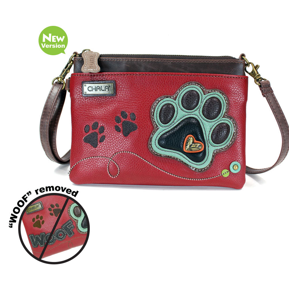 Mini Crossbody - Teal Pawprint (Burgundy)