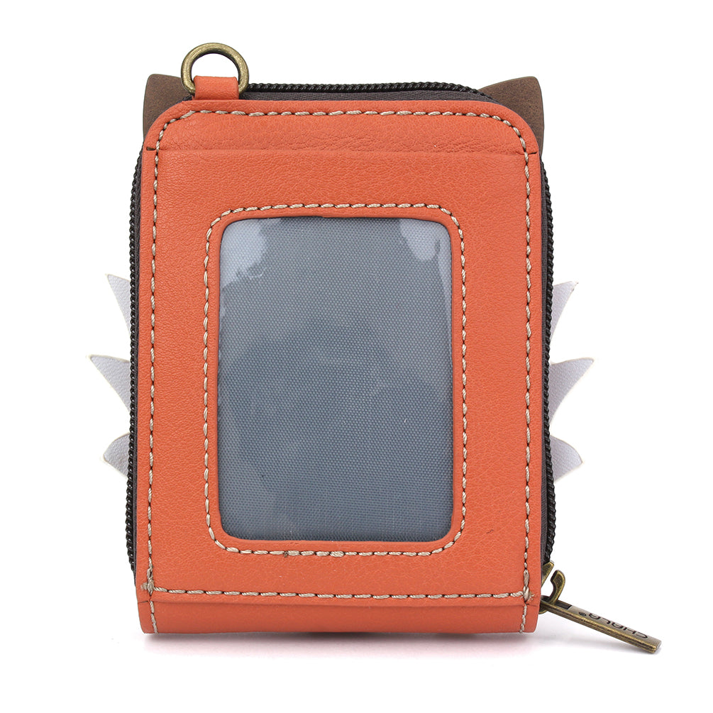 Compact, Playful, and RFID ProtectedThis credit card holder is RFID protected and resembles our Fox Chala Pal character!Comes with decorative key chain charm and wristletAccordion style organizer for your credit cardsRear slot for photo IDInterior snap closure for coins and cashMaterials: Faux LeatherColor: OrangeApprox. Measurements: 3.5"W x 4.5"H x 1"DDesigned in California, USAMade in ChinaColors may not be exactly as shown.