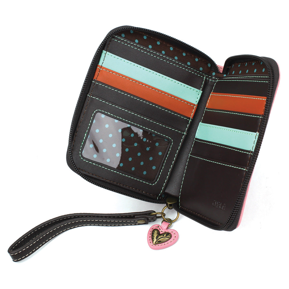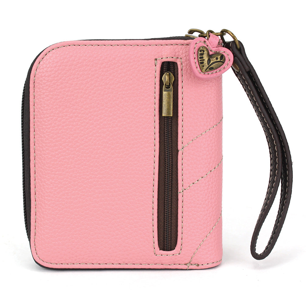Stylish, Fun, FunctionalThe front is adorned with our Unicorn Chala Pal design!Comes with a decorative zipper pull charmLots of slots for your cards and cashOne clear slot for photo IDBack zipper pocket for coins and other small itemsMaterials: Faux LeatherColor: PinkApprox. Measurements: 4.5"W x 5.5"H x 1"DDesigned in California, USAMade in ChinaColors may not be exactly as shown.Lining patterns may vary.